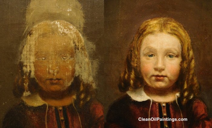 This is especially evident in paintings which have never been varnished. Cleaning and nourishing the paint surface, followed by varnishing, can restore the colors to reflect the artist's original vision.